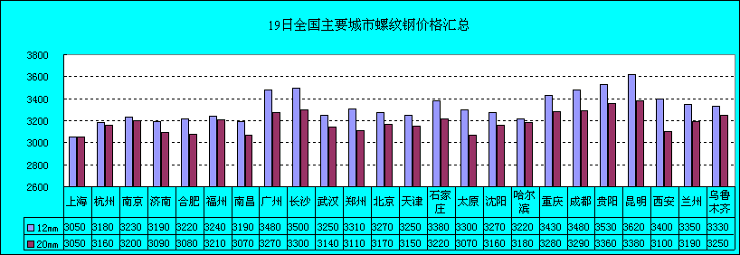 5月19日全國主要城市螺紋價(jià)格匯總