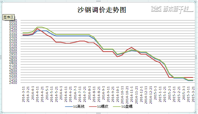 【沙鋼走勢】21日沙鋼建筑鋼材價格政策走勢圖