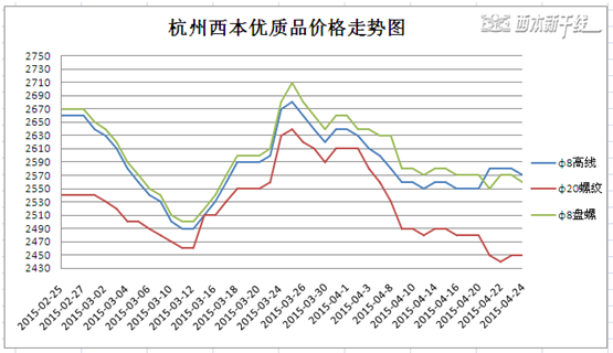 下圖為2015年2月25日-4月24日杭州西本優(yōu)質(zhì)品市場(chǎng)價(jià)格走勢(shì)圖: