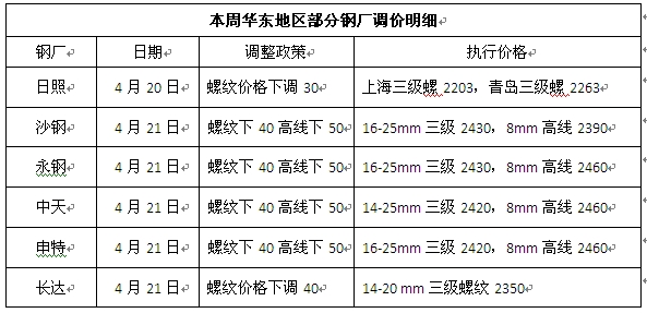 二、【華東鋼廠:市場(chǎng)走跌 鋼廠下調(diào)】