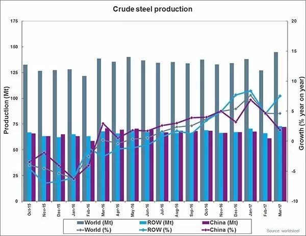 2017年3月全球粗鋼產(chǎn)量