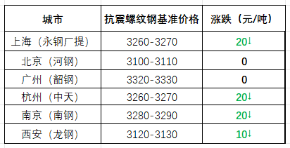 截至午間,國內(nèi)部分市場螺紋鋼(抗震)基價如下:上海市場3260-3270元/噸;北京市場3100-3110元/噸;廣州市場3320-3330元/噸;杭州市場3260-3270元/噸;南京市場3280-3290元/噸;西安市場3120-3130元/噸。環(huán)比來看,截至午間收盤,全國主要市場一線品牌價格偏弱。