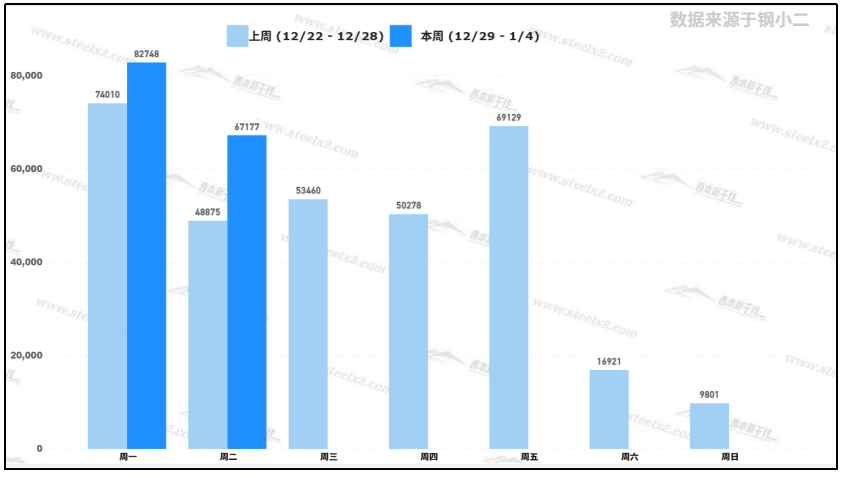 據(jù)鋼小二平臺樣本數(shù)據(jù),12月30日采樣全國工程需求量為67,177噸,較上個交易日下降18%。