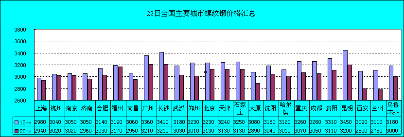 22日全國主要城市螺紋價(jià)格匯總